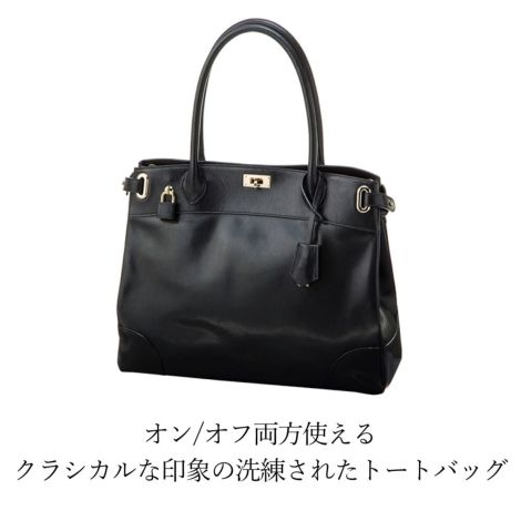 きちんとしたワーキングス―ツから、デニムにシャツをあわせたラフなスタイルまで幅広く合わせていただけるトートバッグ。